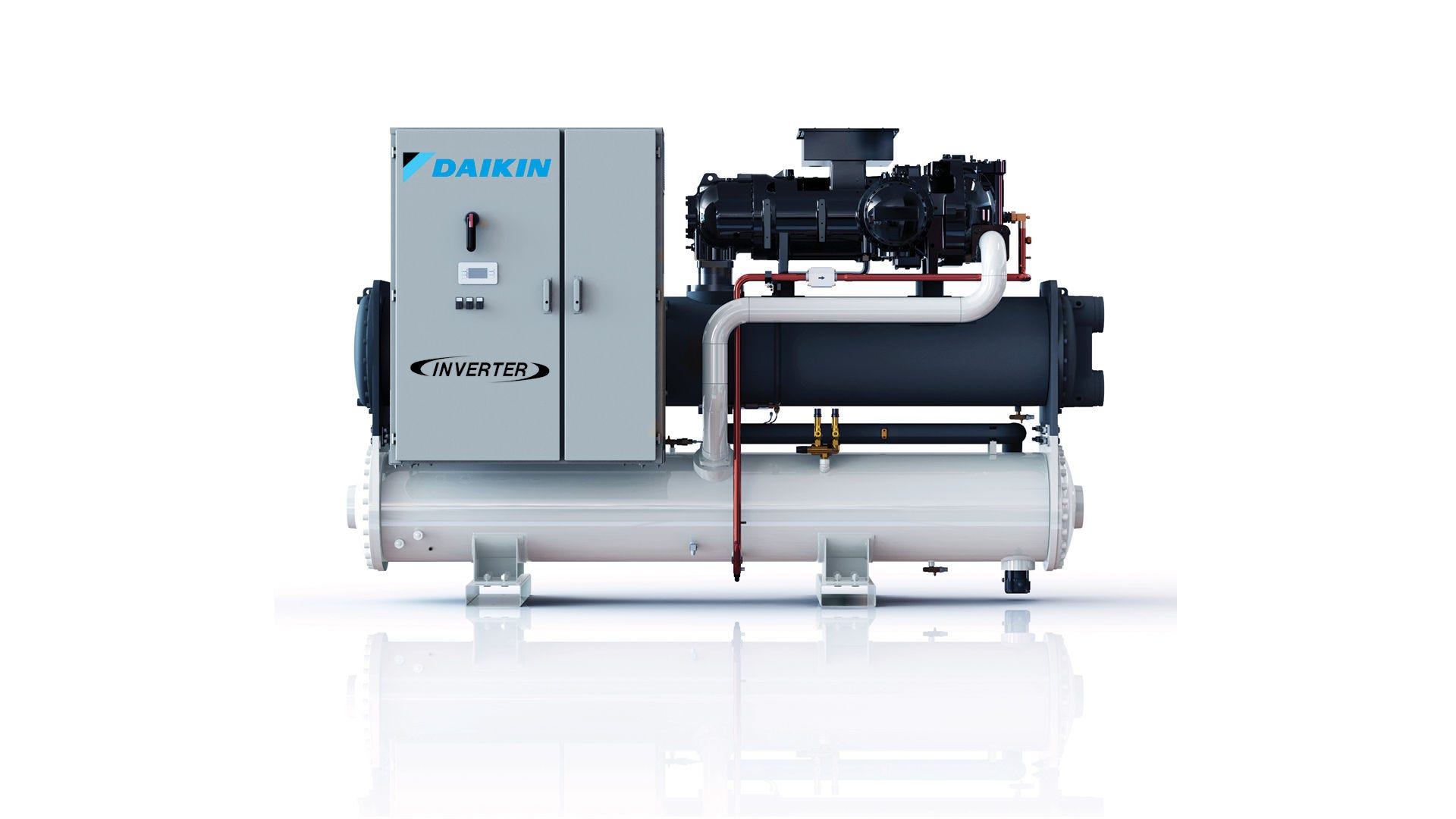 Инверторен чилър и термопомпа Daikin EWWH-VZ с водно охлаждане съчетава изключителна енергийна ефективност с ниско въздействие върху околната среда. Използвайки R-1234ze – хладилен агент с много нисък потенциал за глобално затопляне (GWP) 1,4 – устройството е с капацитет на отопление и охлаждане между 400 и 1900 kW*. Благодарение на компактния дизайн и инверторната технология агрегатът осигурява оптимална работа и гъвкавост за разнообразни нужди. Въвеждането на тази нова опция е съществена стъпка към декарбонизацията на индустриалното отопление. Чрез разширяване на работния диапазон серията EWWH-VZ е подходяща за различни приложения, включително централни отоплителни мрежи и индустриални процеси, при които се изисква вода с висока температура за почистване, стерилизация или производствени цели.