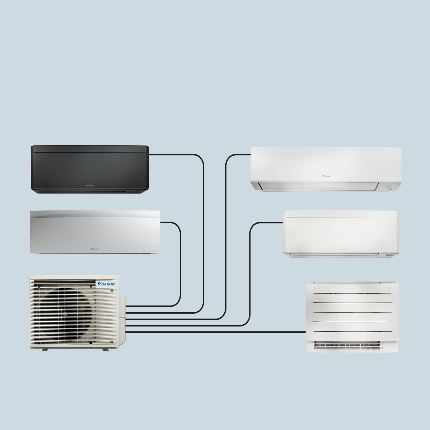 Отопляйте и охлаждайте няколко стаи, като свържете едно външно тяло с до пет вътрешни тела